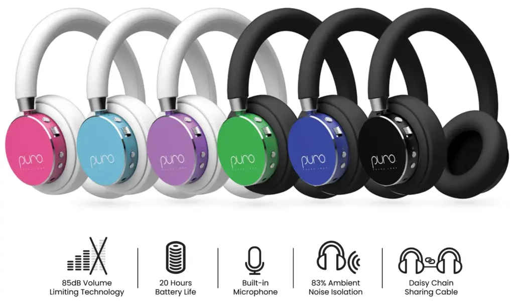 With the added ease of USB-C charging, the Puro Sound Labs BT2200-Plus, an upgraded version of our favorite kids’ headphones with volume limitation since 2016, maintains the original model’s appearance and functionality. Simple controls ensure ease of use with these Bluetooth-enabled headphones. With an astounding battery life of up to 20 hours, these devices provide a longer listening period between charges.